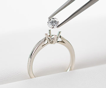 一級技能士が丁寧にセッティングご希望のリングとダイヤモンドルース(裸石)の組み合わせで、自分らしい運命のリングが出来上がります。一級技能士が、熟練のバランス感覚で爪の形ひとつひとつまで丁寧にセッティングいたします。